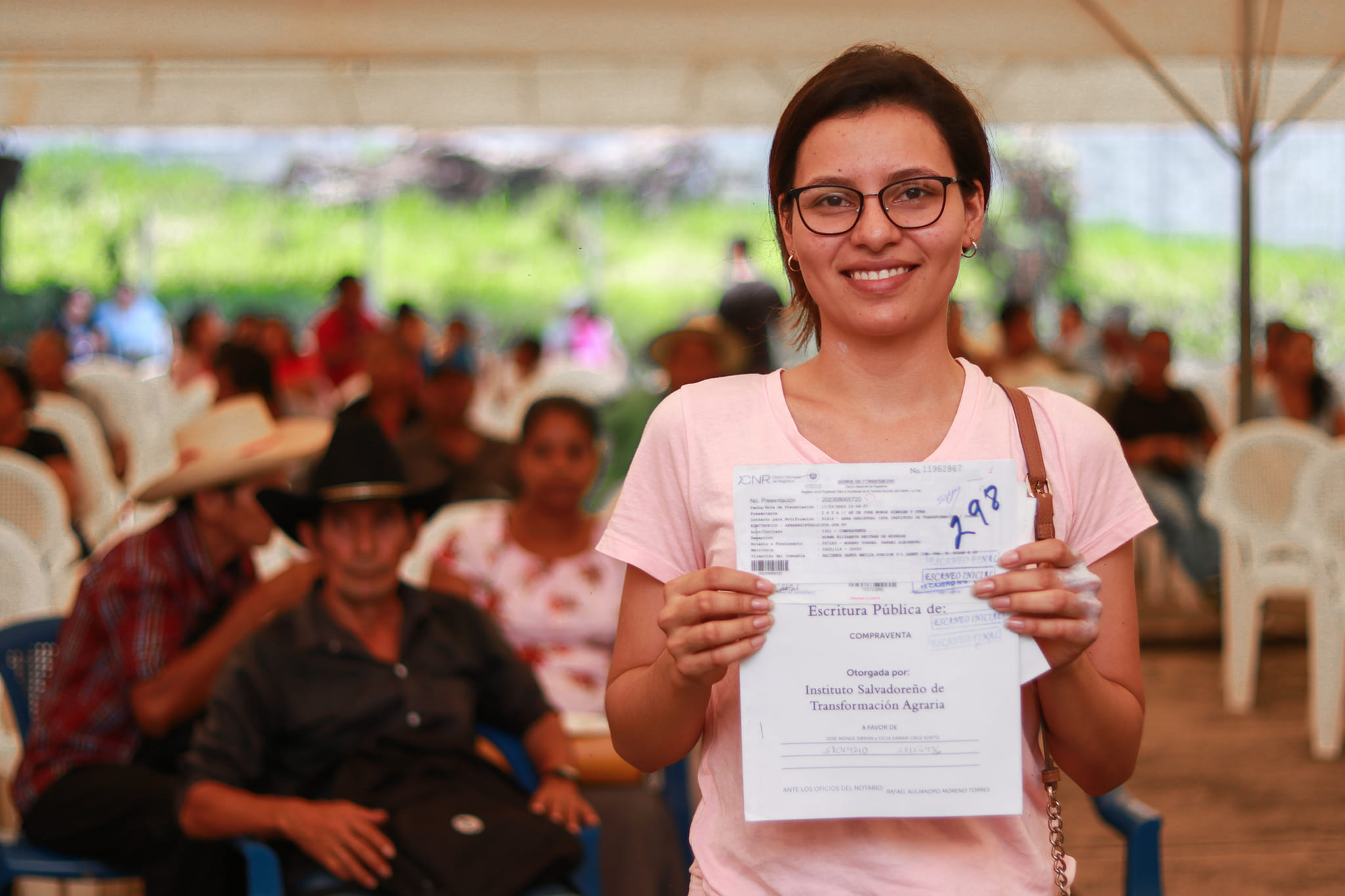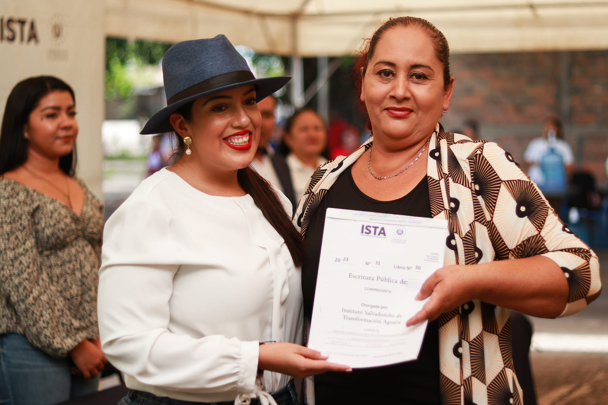 Las Escrituras de Propiedad deja constancia de la Seguridad Jurídica que ahora tendrán las familias favorecidas. Este proceso de transferencia de tierras fue posible gracias al trabajo de técnicos y personal del Departamento de Escrituración, Unidad de Gestión Documental y Archivo, Gerencia de Desarrollo Rural y CETIA III del Instituto Salvadoreño de Transformación Agraria.